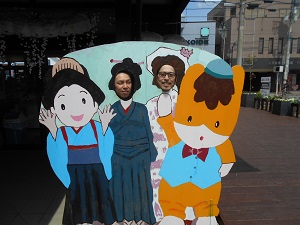 ご当地ゆるキャラのぐんまちゃんと富岡製糸場の女工さんと記念撮影♪