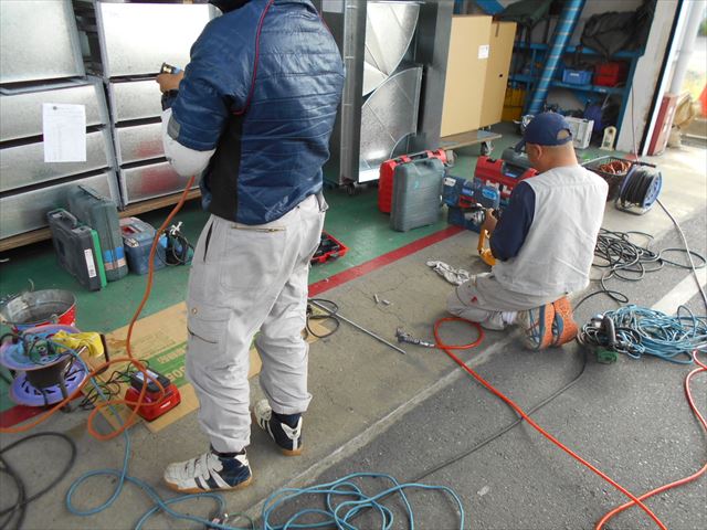今年入社した新人スタッフにはダクト工事の基本を講習です。