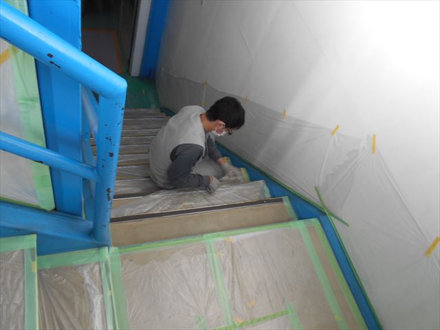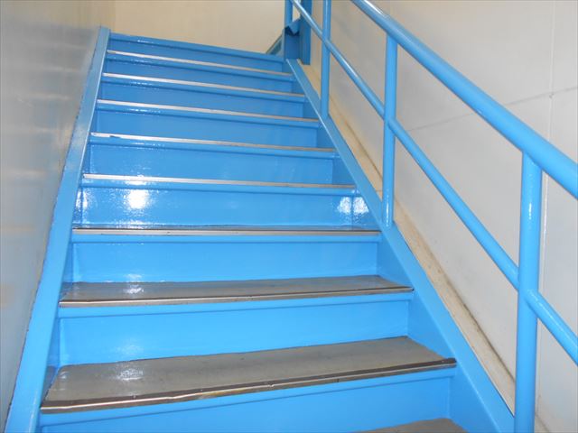 あまり人の目に触れない社員通用口の階段手すり鉄骨部分もきれいに塗装しました。