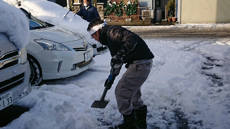 朝礼、ラジオ体操終了後は会社にいる全員総出で雪かきです。