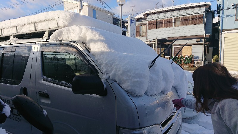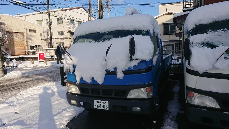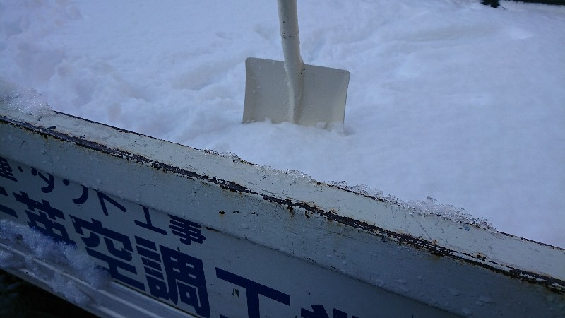 トラックの荷台もスコップが立つほど雪が積もっていました。