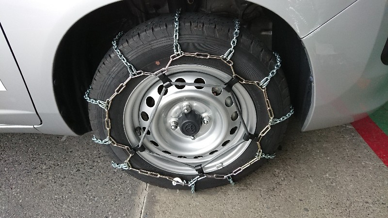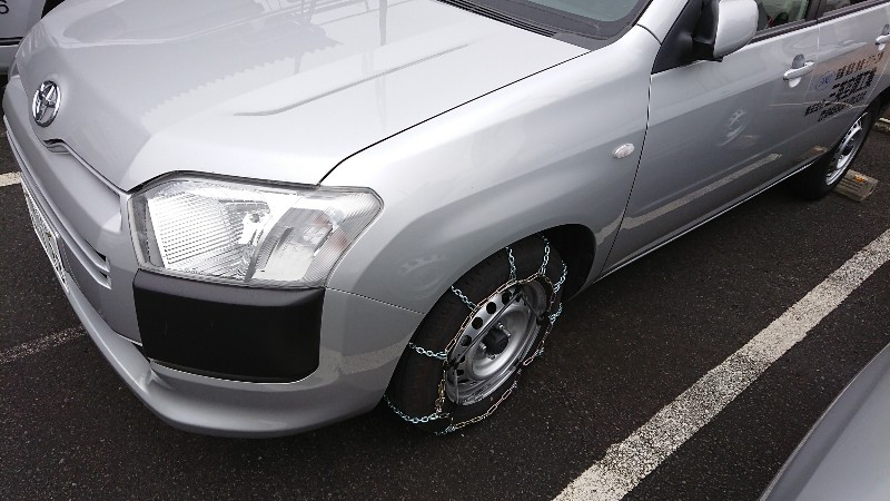 この日に使用が決まっていた車両数台は前日にあらかじめタイヤチェーンを装着しておきました。