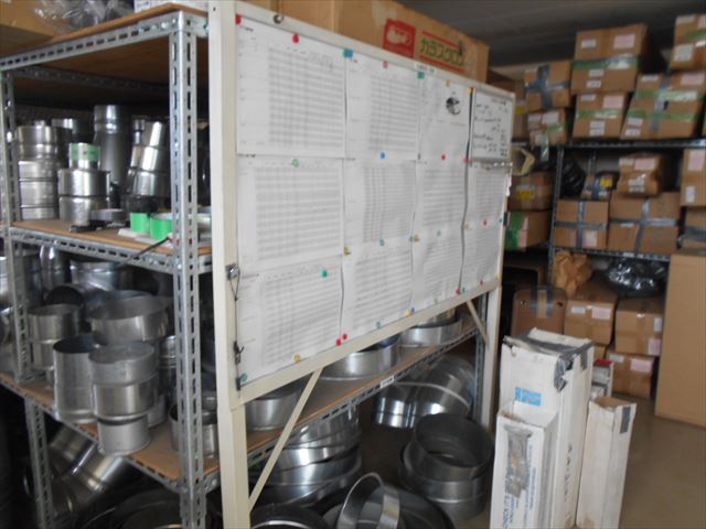 緊急時でも必要な部材があるか一目で確認できるように表を作成し掲示しています。