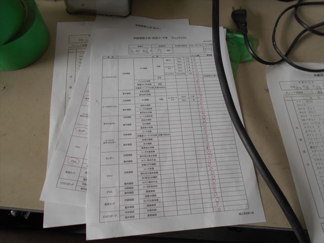 工具及び備品のチェック。