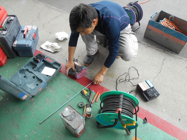電動工具は正常に稼働しているかも含めて細かく点検します。