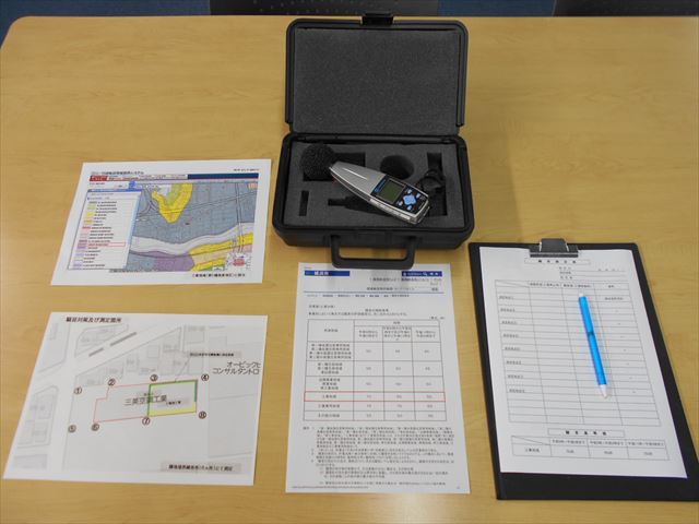 本日は半期ごとに実施している、弊社工場の隣地境界線における騒音測定を行いました。