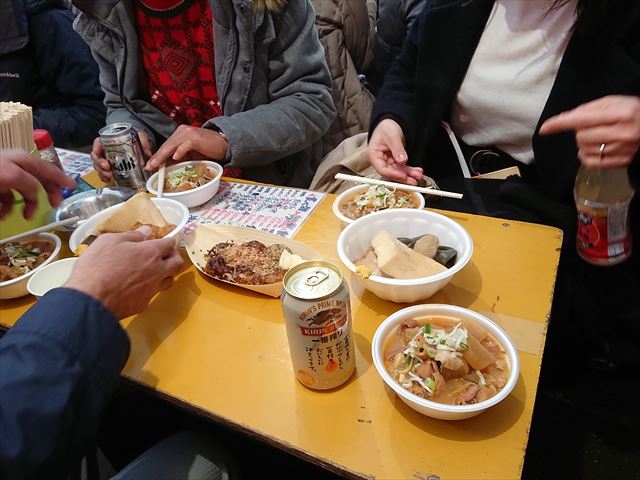 そして境内の出店で軽く一杯と腹ごしらえ