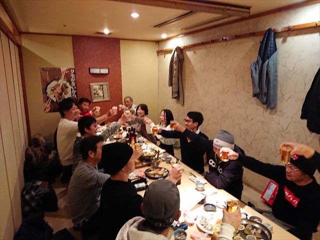 ボウリング大会終了後は、「魚や一丁川崎日航ホテル店」にてお待ちかねの新年会!