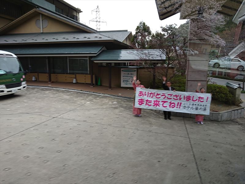 ホテル「華の湯」従業員のみなさん、お見送りありがとうございます♪