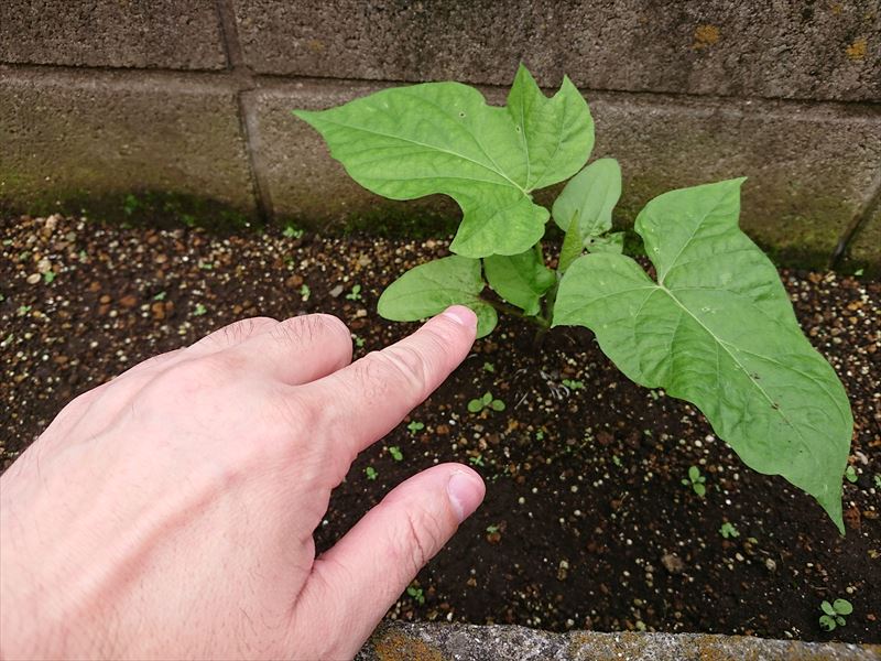 土の養分が良いせいか、本葉は日に日に巨大化しています。
