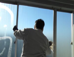 太田専務自ら率先して窓をきれいに磨きます (^-^)