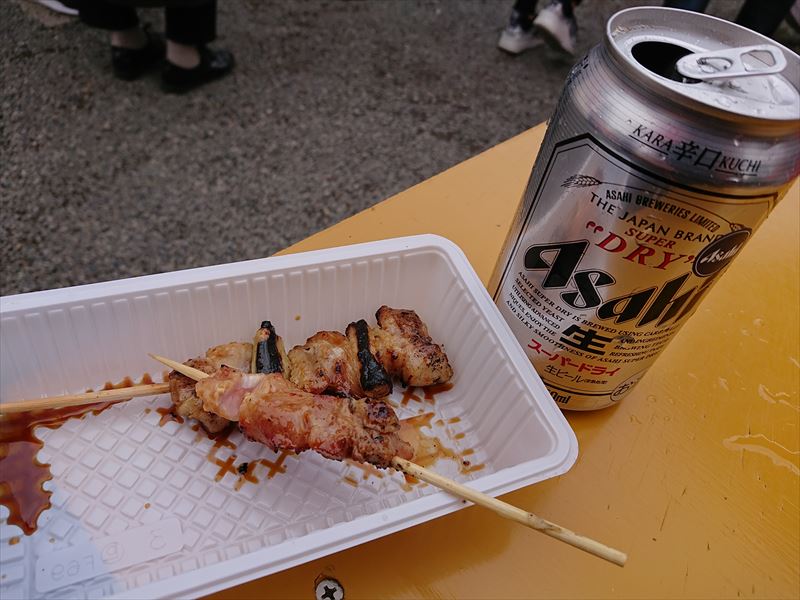 境内を散策しながら出店で軽く一杯と腹ごしらえ。