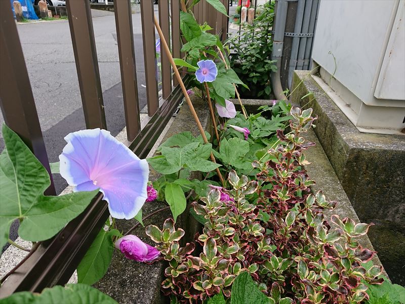 今の時期はアサガオを植え、つぼみが徐々に開花し始めています。