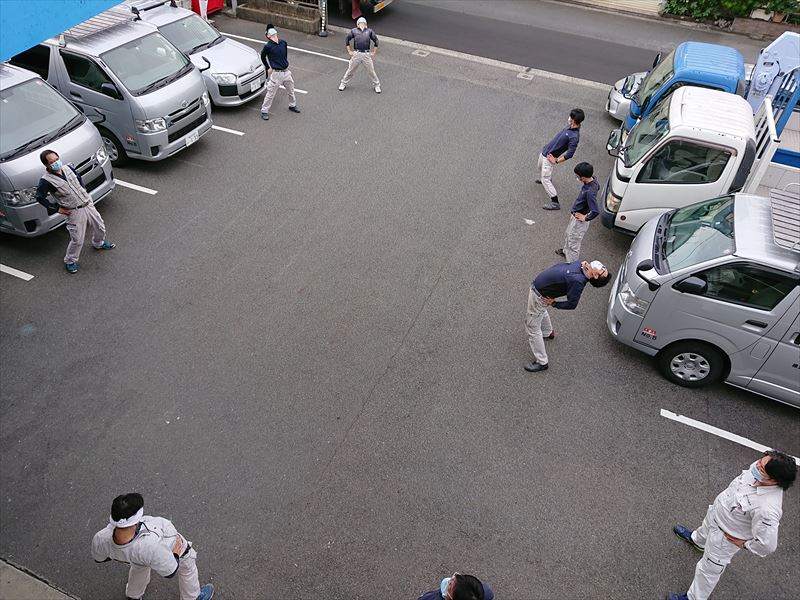 日祝を除いた月曜日から土曜日(月末最終土曜は除く)まで、ご近隣の方も交えて8時ちょうどにラジオ体操の音楽を流して開始しています。