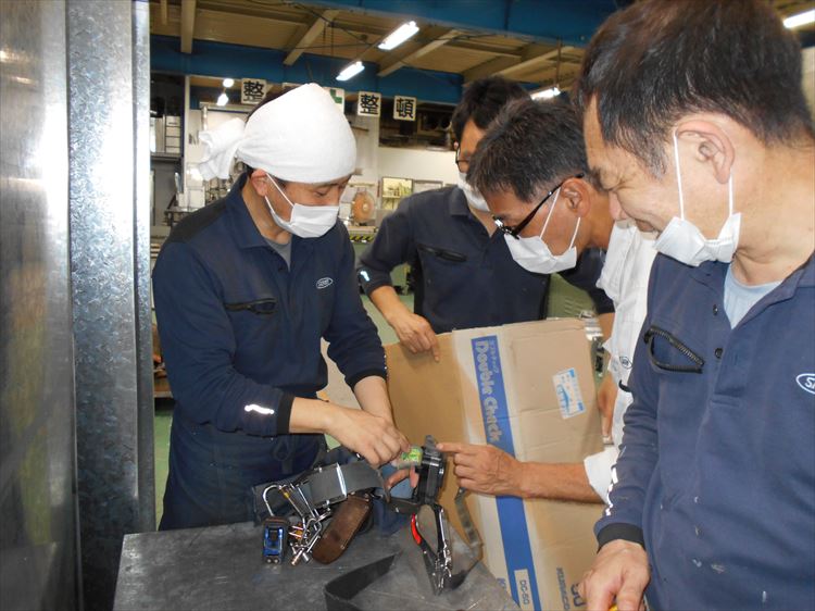この日は、定期的に行っている倉庫・車両整備に加え、各自で使用している安全帯の点検を行いました。