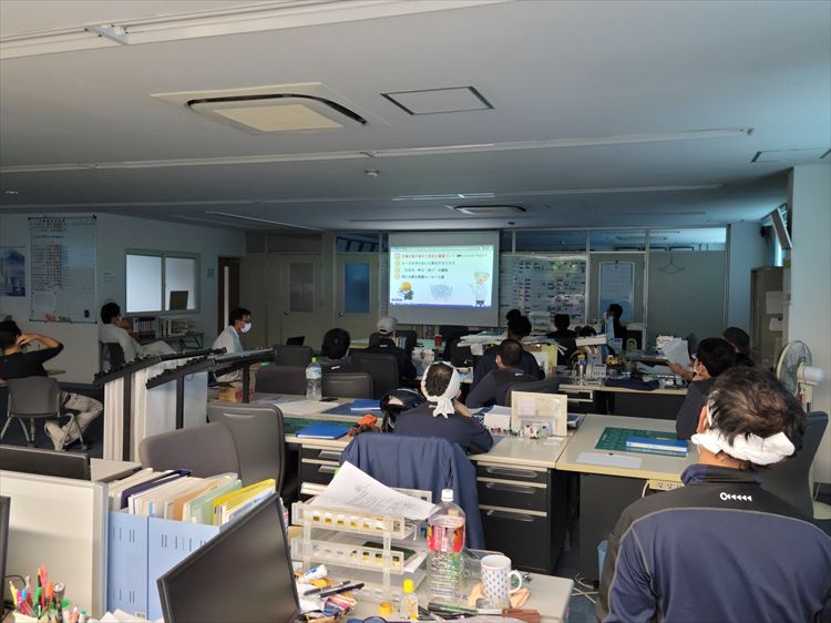 車輛・倉庫整備、架設資材の点検が終わった後は、夕方から社内講習会を行いました。