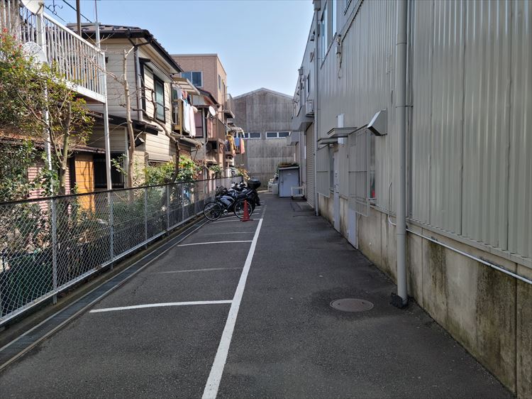 騒音対策で最も気をつけなければいけないのがこちらの住宅と隣接する「計測地点③」、建物の内側面には吸音材を貼り少しでも騒音の漏れを防ぐように対策処置しています。