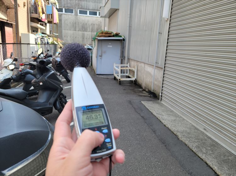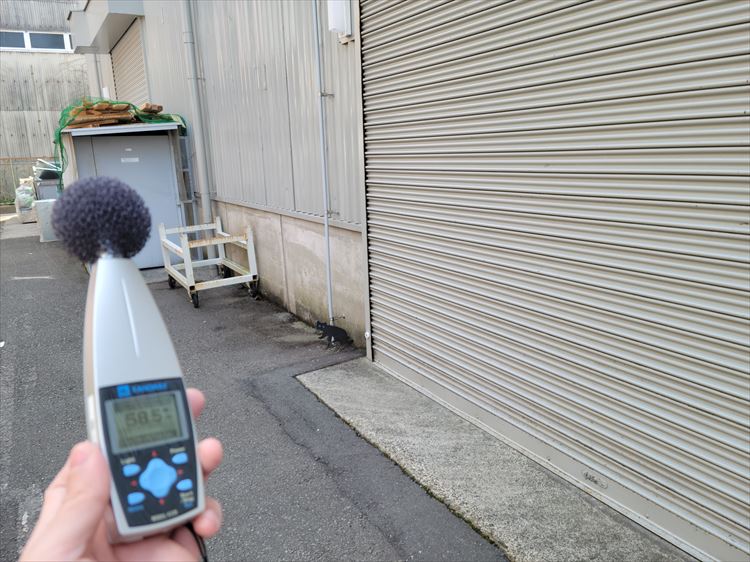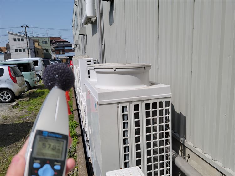 また、こちらの「計測地点⑦」では、空調室外機置場が設置してあり、冬季や夏季には稼働率が大きく、また工場換気の排出口もあるため計測も念入りに行います。