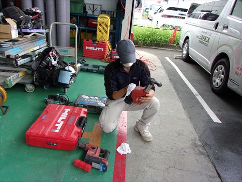 間もなくお盆休みの時季ですが、期間中にも稼働している現場はいくつかあり、工具類や消耗部材等も不測の事態に備えて念入りにチェックします。