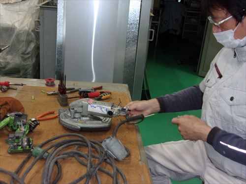調子が悪い電動工具類は工場長が細かくメンテナンス。