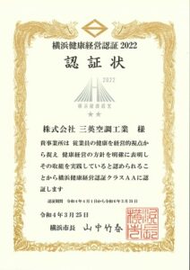2022年(令和4年)11月7日(月)この日は、横浜市都筑区役所福祉保健課健康づくり係より講師の方をお呼びし、「生活習慣病を予防するための食生活について」セミナーを行いました。 プロジェクターで資料を投影しながら、予防のための食品情報や対策などを具体的に細かく講義して頂きました。 弊社は以前より全社員の健康づくりを柱とした「健康経営」に率先して取り組み、『横浜健康経営』認証事業所認定(クラスAA)を頂いております。 今後も従業員、ご家族関係者皆様の健康保持、推進に取り組んでまいります。 Post Share Hatena LINE RSS feedly Pin it note この記事のタイトルとURLをコピーする 家族レクリェーション 前の記事 社内講習会 次の記事