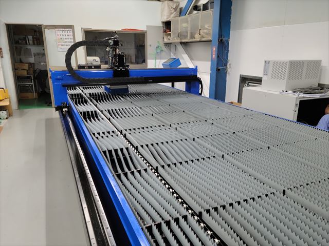 新しい機械はファイバーレーザー式の切断機、従来のプラズマ式と比べてヒューム、窒素酸化物が大幅に削減され、環境保護にも大きく貢献できます。