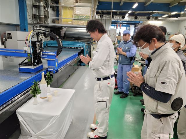 工場作業の安全無事故と、この機械をとおして社会に益々貢献出来ますよう御祈念致しました。
