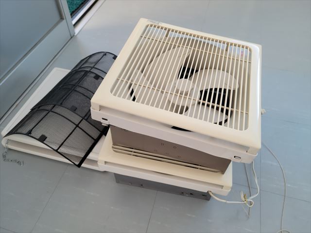 事務所も換気扇やエアコンのフィルターを取外しきれいに水洗いします。