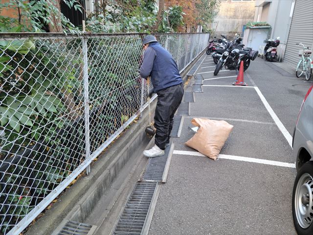 外部にあるシャッターもきれいに水洗い、敷地内側溝もグレーチングを外しきれいにドブさらいします。