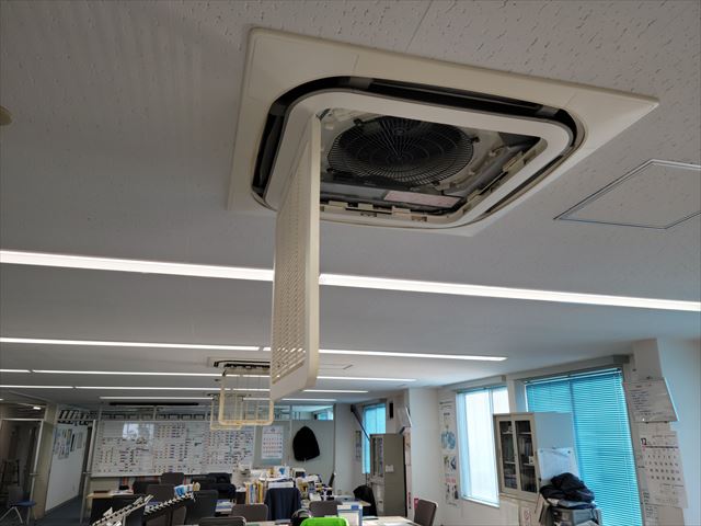 事務所も換気扇やエアコンのフィルターを取外しきれいに水洗いします。