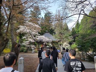 大滝へ行く前に、徒歩の道中にある秋保大滝不動尊でお参り、横浜では既に散った桜ですがこちらではまだ見ることができて感動です。