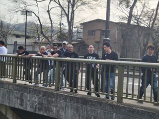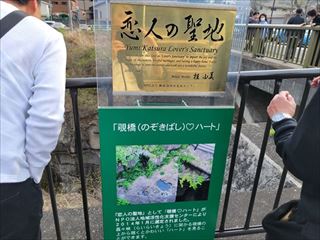↑ 橋の上からハートを覗き込む弊社社員の面々!