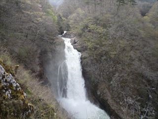社員旅行初日午後、あなごひつまぶしでお腹を満たした後は、観光バスで秋保大滝へ移動。