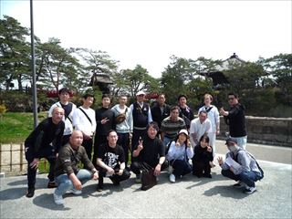 観光初日早速ですが、こちらで恒例の社員一同の記念撮影。