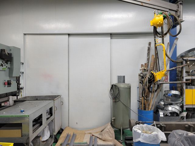 図の建物の緑色部分は住宅地と隣接する為、建物の内壁に消音部材を貼っています。