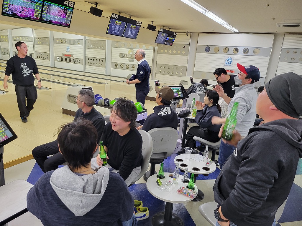 参拝後は境内の出店で軽く一杯ひっかけ、次は場所を移し川崎グランドボウルで恒例のボウリング大会です。