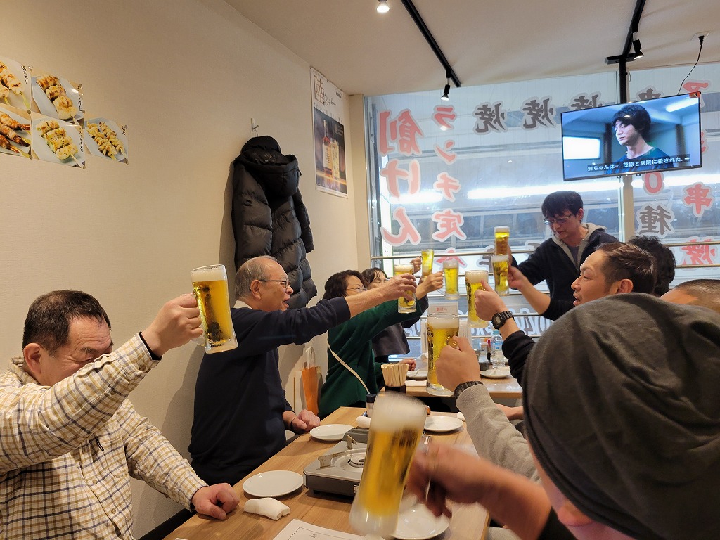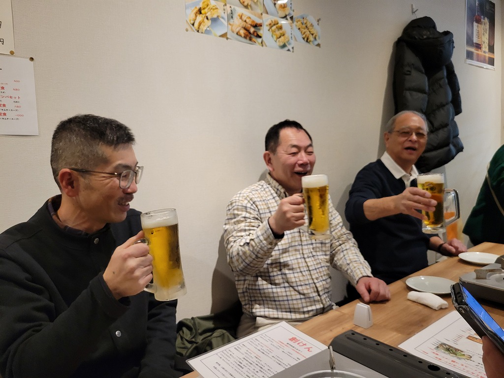 2ゲームを皆で楽しみ、次はお待ちかねの新年会!「串焼居酒屋 創けん」様へ