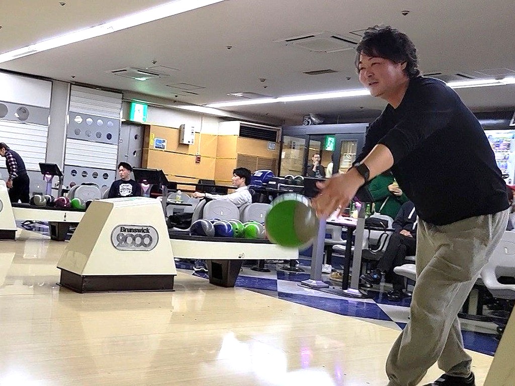 製作部主任さん、ストライクを確信も1ピンだけ残りこの表情(笑)
