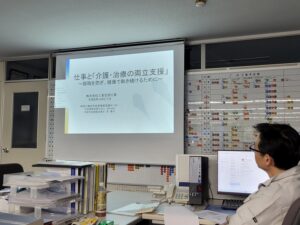 仕事と「介護・治療の両立支援」~離職を防ぎ、健康で働き続けるために~ とのテーマで、仕事と介護・治療に関する基本的な知識をわかりやすく解説していただきました。